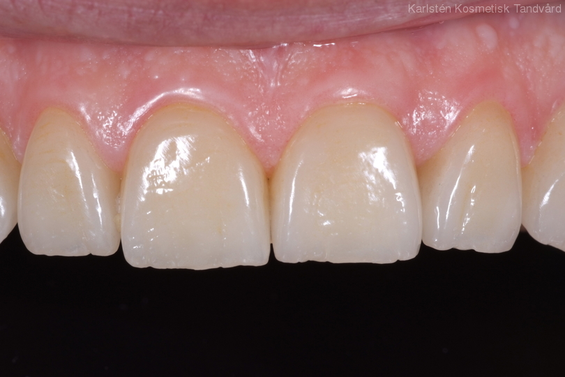 Slitna tänder generellt. Behandling: Blekning samt 8 kronor i överkäken samt 6 kronor i underkäken.