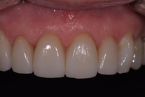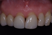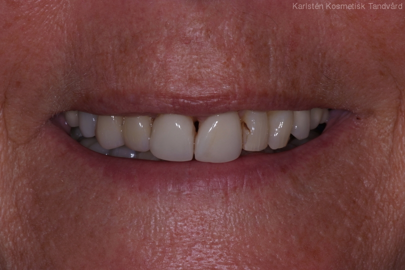 Äldre fasader och kronor. Behandling: 5 porslinskronor.