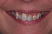 30-årig kvinna med oregelbundna tänder. Behandlingen består av 11 månaders tandreglering med genomskinliga Invisalignskenor, generell blekning samt 3 porslinsfasader.