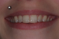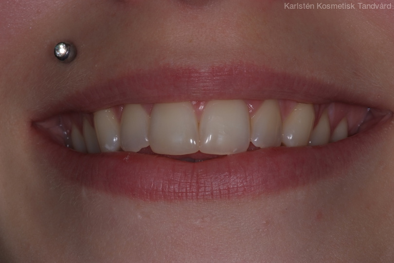 24-årig kvinna som skadat 2 framtänder. Tänderna uppbyggda i composite.