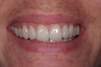 Stort mellanrum mellan framtänderna, ca 4 mm. Behandling: Generell blekning samt 4 fasader.