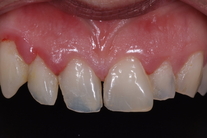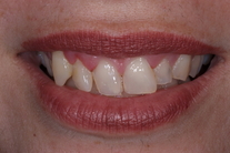 Kraftigt nergnisslade tänder. Behandling: Generell blekning, laserkonturering samt 21 porslinständer.