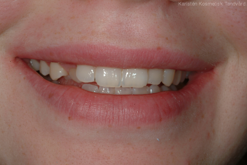 19-årig flicka som har felställning på en hörntand. Behandling med laserkonturering och 1 fasad.
