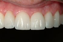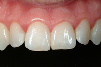 Sneda och roterade tänder rätades ut och gjordes mer symmetriska. Behandling: Generell blekning samt 6 fasader.