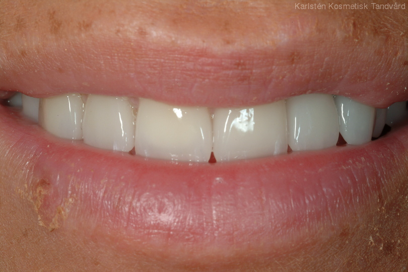 Ojämna framtänder med avvikande position och form. Behandling: 10 fasader i överkäken.