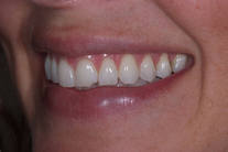 Avslagen bit av framtand. Lagad med skiktad composit.